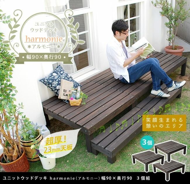 【ユニットウッドデッキ harmonie(アルモニー)90×90 3個組】