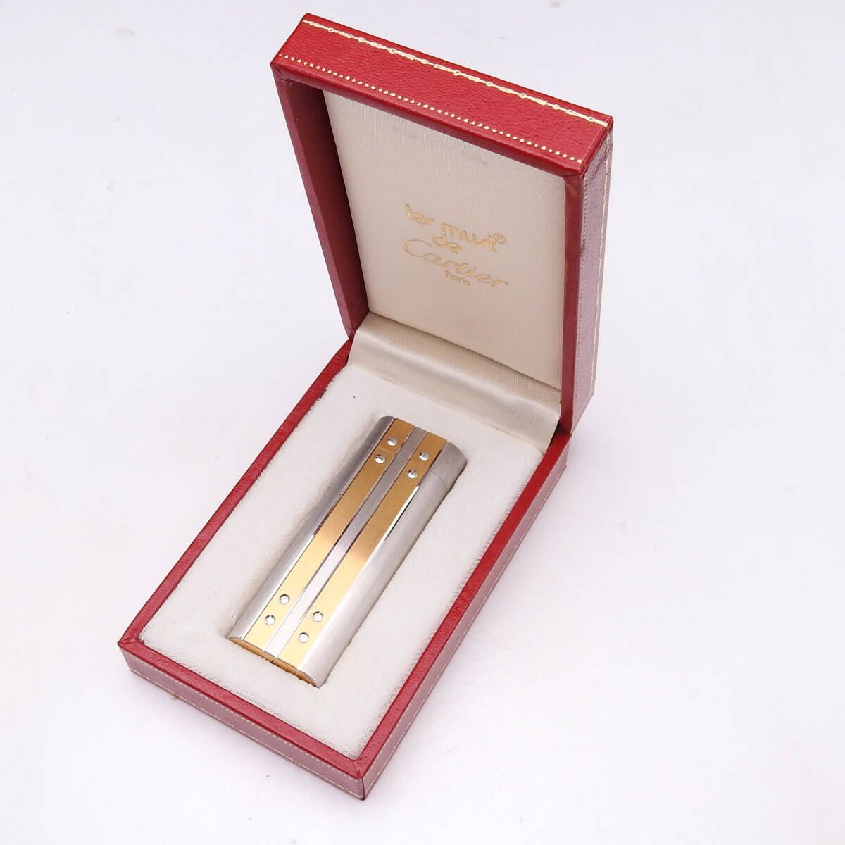 着火 済み Cartier カルティエ サントス ガスライター シルバー×ゴールド ケース カード 取説付き