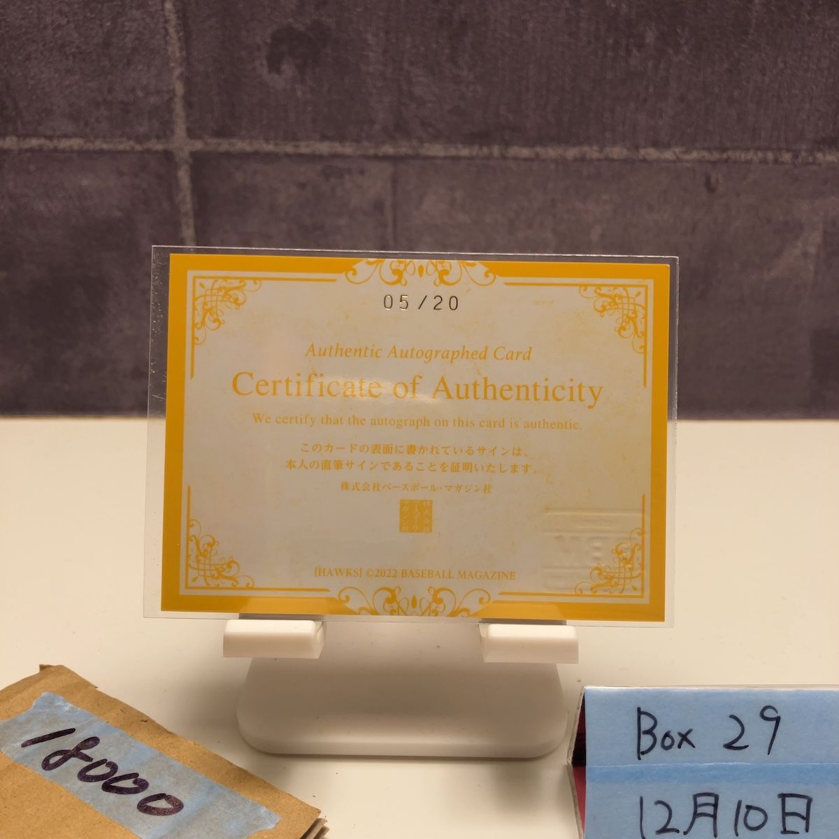 2022 BBM 大竹風雅 05/20 直筆サインカード 福岡ソフトバンクホークス RC ルーキー Rookie