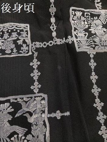 平和屋着物 上質な小紋 人物花鳥文 黒地 正絹 ph