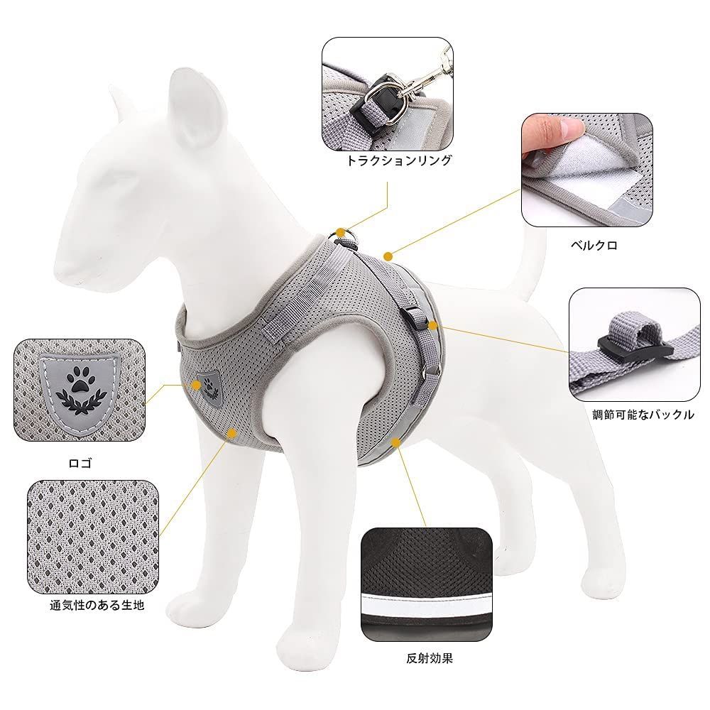 メッシュ 犬用 ハーネス 胴輪 反射材料付き リード セット 超小型犬 小型犬 子犬 猫 散歩/訓練/お出掛 ペット はーねす 安全 抜けない 軽量 調節可能 通気性が