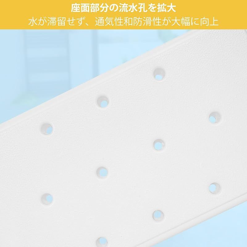 【安定性デザイン】足先がゴム製ですので、すべり止め効果抜群、水ある地面でも安定に利用できます。座面の両側には手すりのデザインがあります。使用者が手すりを把握しやすいで、安全、安心です。高齢者、妊娠中の女性など使えます。
