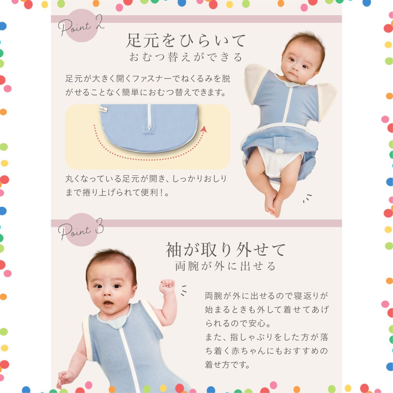 綿96 腕出しOK 伸縮生地 足元オープンで夜間オムツ替えラク 洗濯機 乾燥機OK 新生児用 足元オープン スワドル IHDI認証 冬 M字設計 秋 助産師の声から ねくるみ
