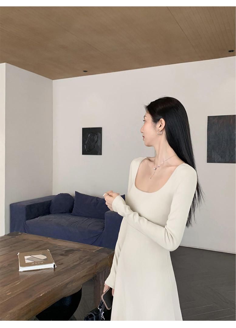 大人 ニットロングワンピース着痩せ効果抜群!春の女子会 デートに最適