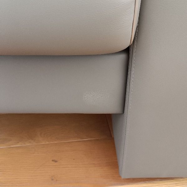 オカムラ製の高級応接ソファ、落ち着きのあるグレーカラー。
