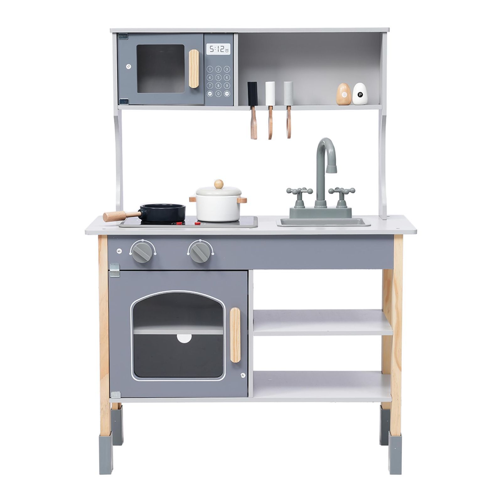 ままごと キッチン 木製 ままごとセット 台所 知育玩具 子供用 収納 まねっこ コンロミニキッチン おもちゃキッチン ベビー ギフトボックス付き グレー