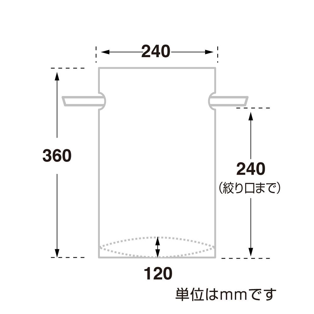 サイズ:幅240mm×高さ360mm+マチ120mm、絞り口まで:高さ240mm