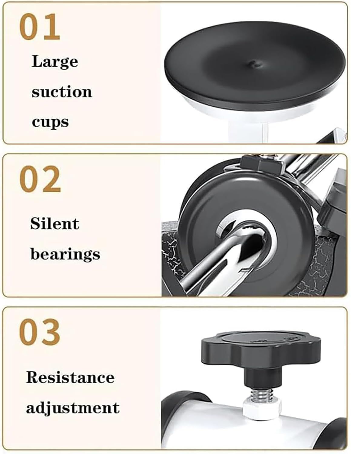【抵抗調整可能】:テンションノブを左右に回すことで抵抗を増減できます。必要に応じて抵抗値を調整し、個人に合わせたエクササイズが可能です。
