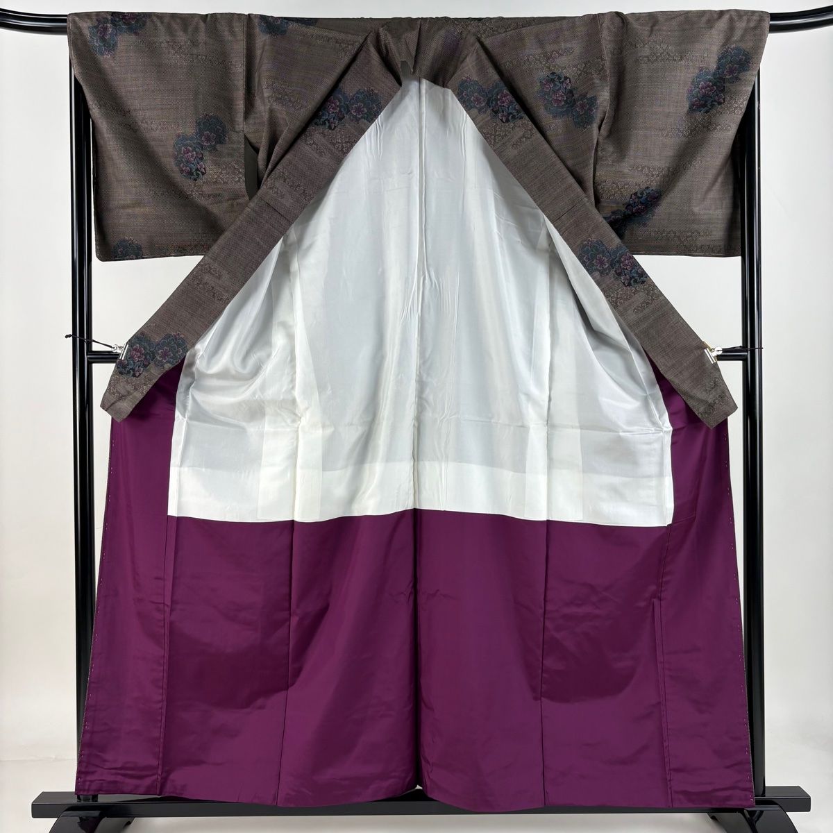 大島紬 身丈159 cm 裄丈68.5 L 袷 純泥染 証紙 草花 ヱ霞 焦茶色 正絹