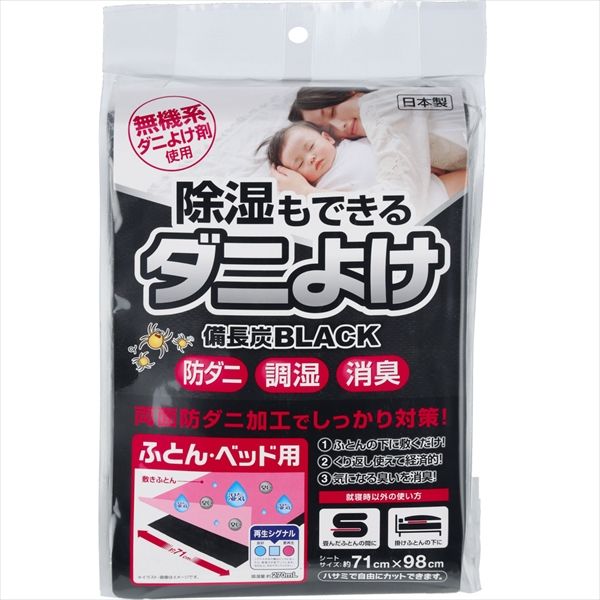 12点セット 除湿もできるダニよけシート 備長炭BLACK ぶとん ベッド用 宇部マテリアルズ 除湿剤