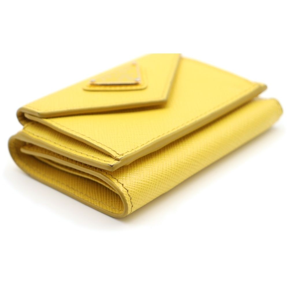 PRADA プラダ トライアングルロゴプレート サフィアーノレザー コンパクトウォレット 三つ折り財布 ゴールド金具 イエロー 1 MH 021
