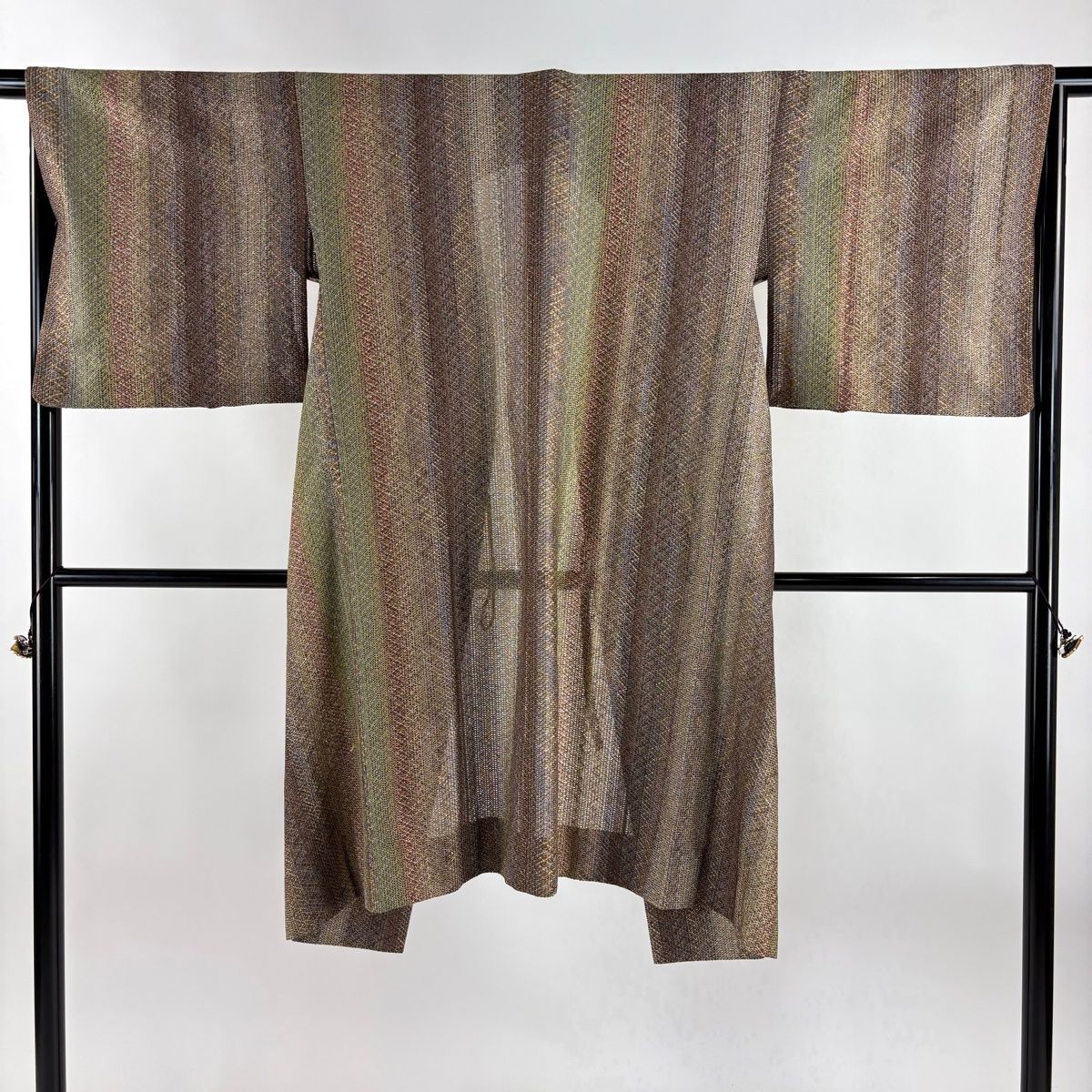 道中着 身丈111.5 cm 裄丈66 M 和装コート 縞 茶色 正絹 名品