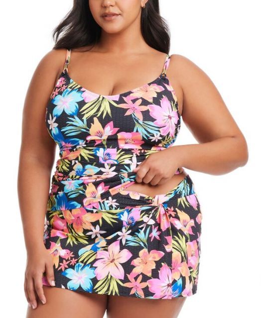 PlusSizePrintedSweetEscapeDrapedHipsterSwimSkirt