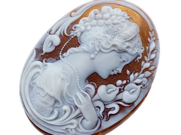 美しい貴婦人を繊細な彫刻で演出した素敵なシェルカメオルースです!