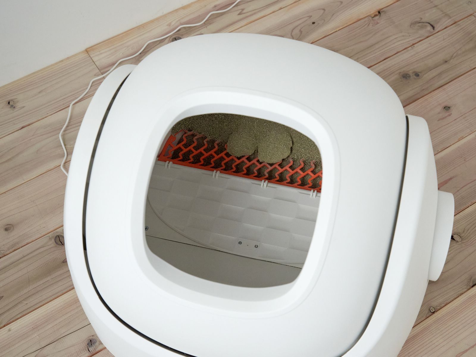 ●本体上部に排泄物が溜まるように設計されており、袋と蓋の密閉により嫌なニオイをしっかりとブロックします。7Lのダストボックスがいっぱいになると、アプリで知らせてくれます。