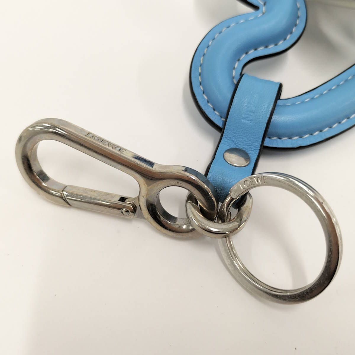 LOEWE トリプルハート チャーム キーリング レザー メタル ブルー ホワイト ブラック