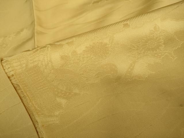 平和屋着物 上質な色無地 御所車風景草花地紋 黄朽葉色 正絹 ud