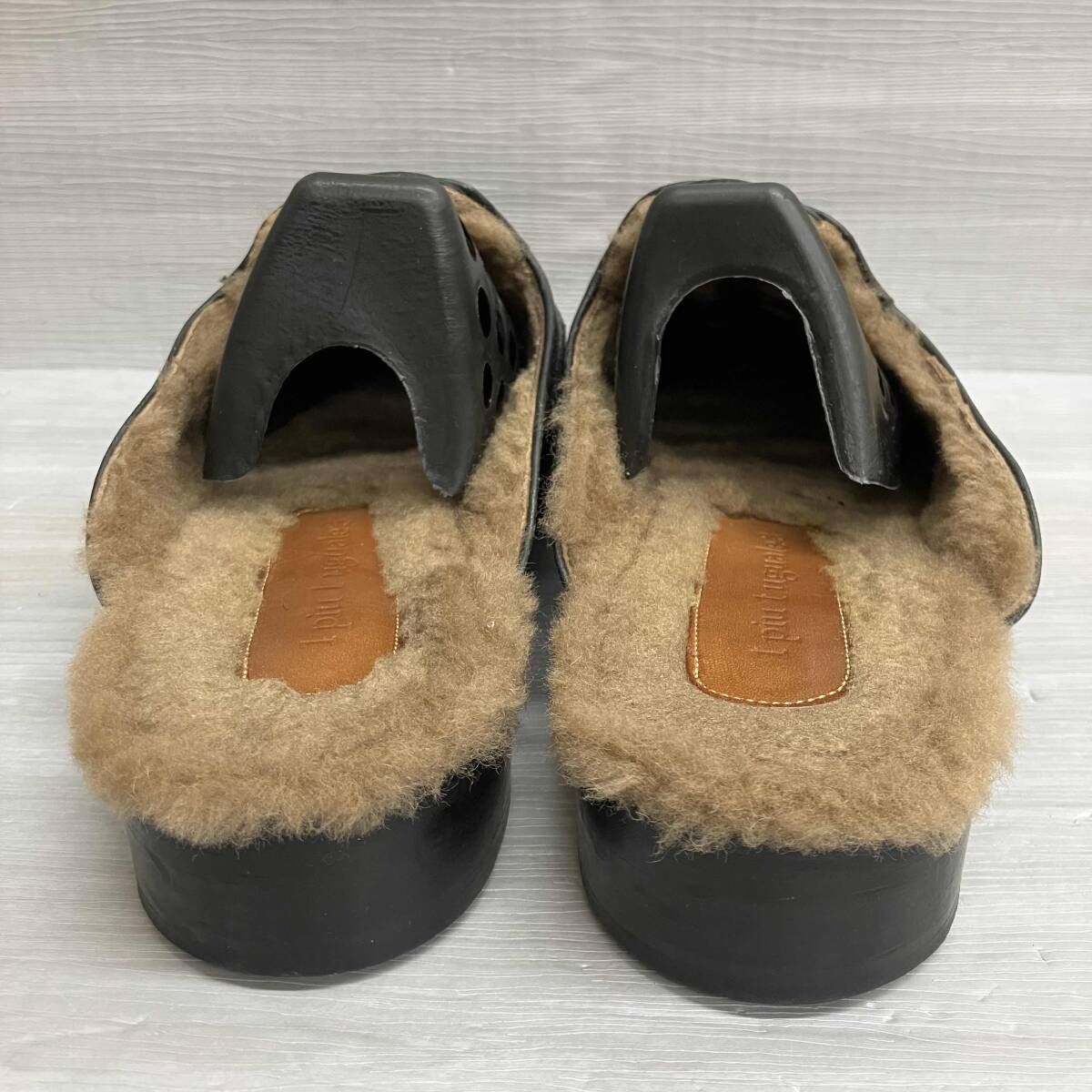 ウノピゥウノウグァーレトレ レザー ウイングチップ ファー サンダル ブラック 43インチ 28~28.5 cm