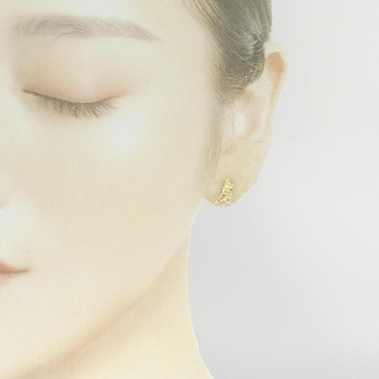 K18YG キャット ダイヤモンド ピアス 0.02CT
