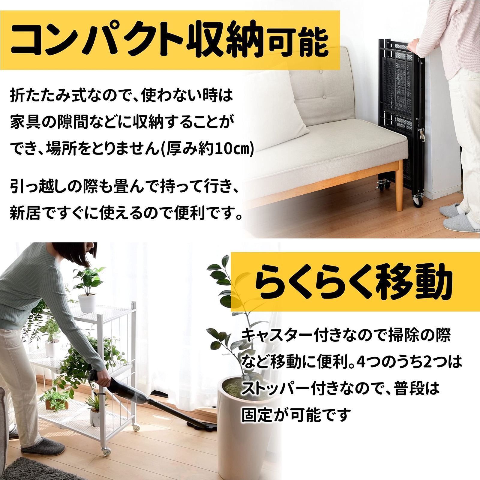 【届いてすぐに使えるラック】折りたたみ式の本体完成品なので、キャスターを付けてラックを開けばすぐに使用可能! 煩わしい組立作業から解放されます。