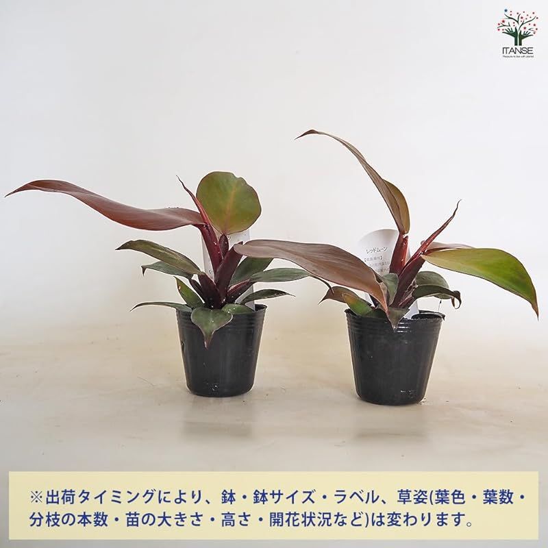 ITANSE フィロデンドロン レッドムーン 2.5号 セット 観葉植物 学名 Philodendron redmoon サトイモ科 非耐寒性常緑多年草 原生地 南米 美しい赤斑が特徴的 アートに飾れる 葉も丸みを帯びてかわいらしい 耐陰性が