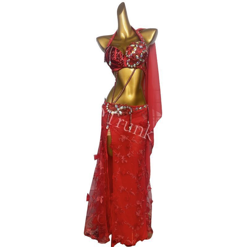♥ ベリーダンス オリエンタル衣装 薔薇 レッド ブラ スカート オーダーメイド
