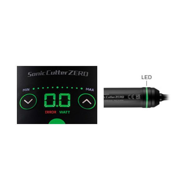 【特長】●超音波振動を利用した高性能カッターです。●軽いタッチで鋭い切れ味、複雑な形も思いのままにカットできます。●超音波振動による美しい切断面と仕上がりが得られます。●一目で分かりやすい操作パネルデザインでハンドピースにLEDを採用し、ON/OFFの状態が瞬時に分かるようになりました。●旧製品と比較し46%軽量化しました(旧コントローラ 2.6kg → 新コントローラ 1.4kg)。●振動子の改良により、旧製品と比較し最大28.6℃の発熱低減に成功し、効率化を実現しました。●温度上昇を抑えて連続使用が可能となり