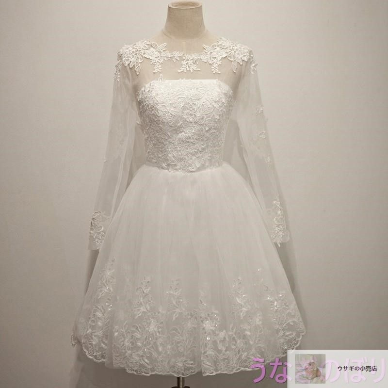 ミニドレス ウエディングミニドレス 長袖 演奏会 パーティードレス 発表会 ミニ 二次会 ウエディングドレス 結婚式 タイトドレス コンサート 白