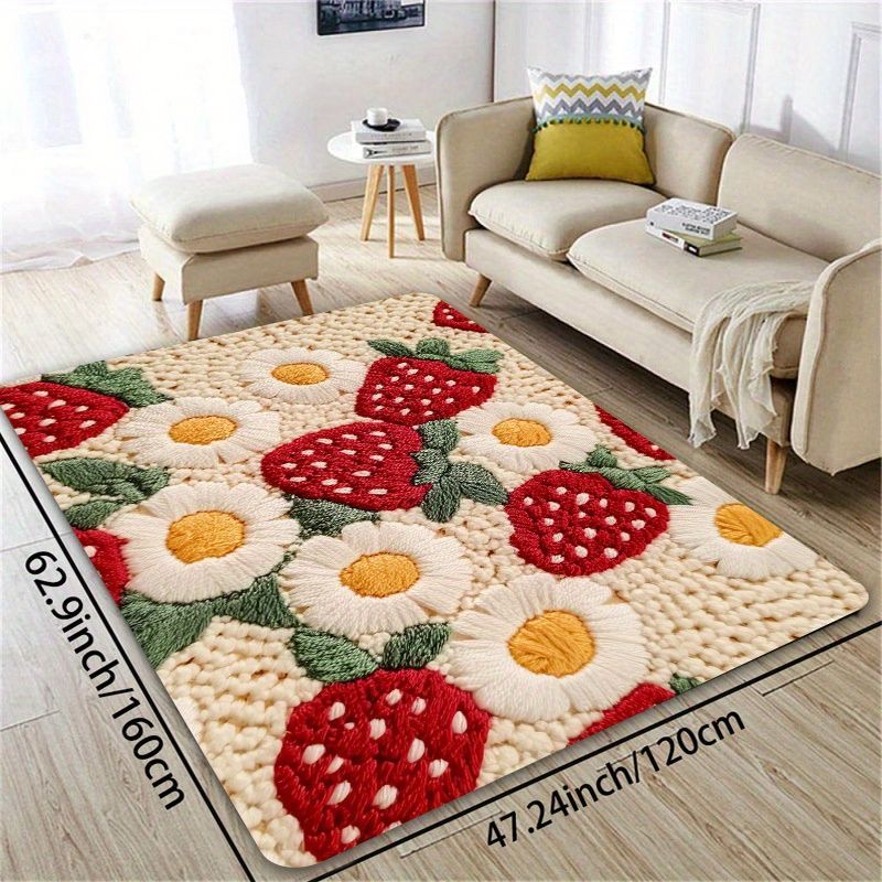 愛らしいいちごデザインでお部屋を華やかに演出するマットラグ。