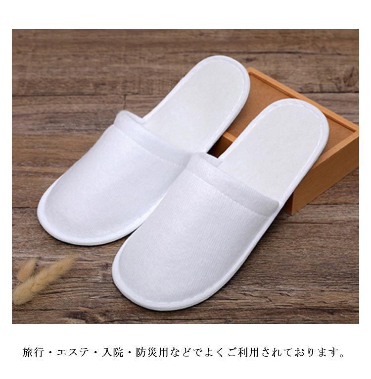 ふわふわで履き心地のよい白無地で高級感ある使い捨てスリッパです。