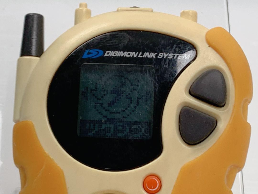 こちらは 「デジモンアドベンチャー02」 に登場する携帯型玩具、バンダイ製の 「デジヴァイス D-3(イエロー×ホワイト)」 です。ディスプレイにキャラクター表示あり、ボタン操作も確認済みです。