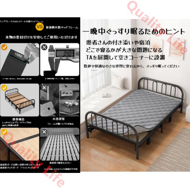 ? 折りたたみ式完成品:このベッドは組み立て不要で、広げるだけで簡単に使用できます。狭いスペースでも場所を取らず、省スペースで管理が楽です