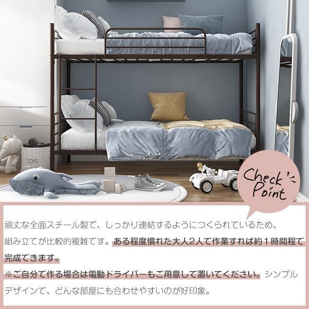 二段ベッド パイプベッド 2段ベッド ロータイプ 上下分割 スチール 耐震 シングル 子供ベッド