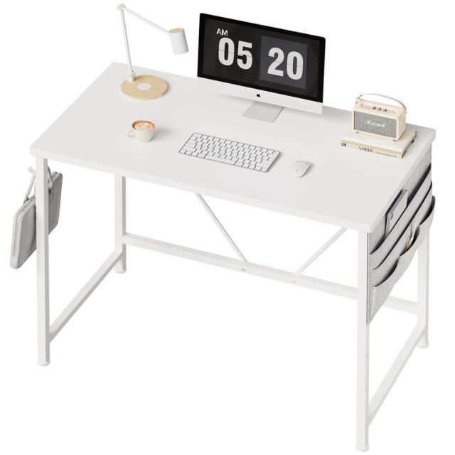 YeTom パソコンデスク pc 幅100 奥行48 cm つくえ シンプル 収納袋付き勉強机 フック付き学習机 オフ ィス 組立簡単 在宅 テレワーク 白い