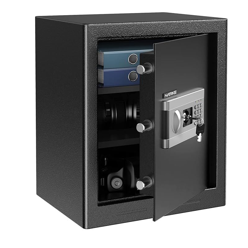 NATRKE 金庫 家庭用金庫 テンキー式 電子金庫 防犯金庫 緊急キー付き 家庭用 店舗用 保管庫 業務用 警報アラーム付き A 4ファイル対応 床 壁に固定 日本語取扱説明書付き 43 L 1