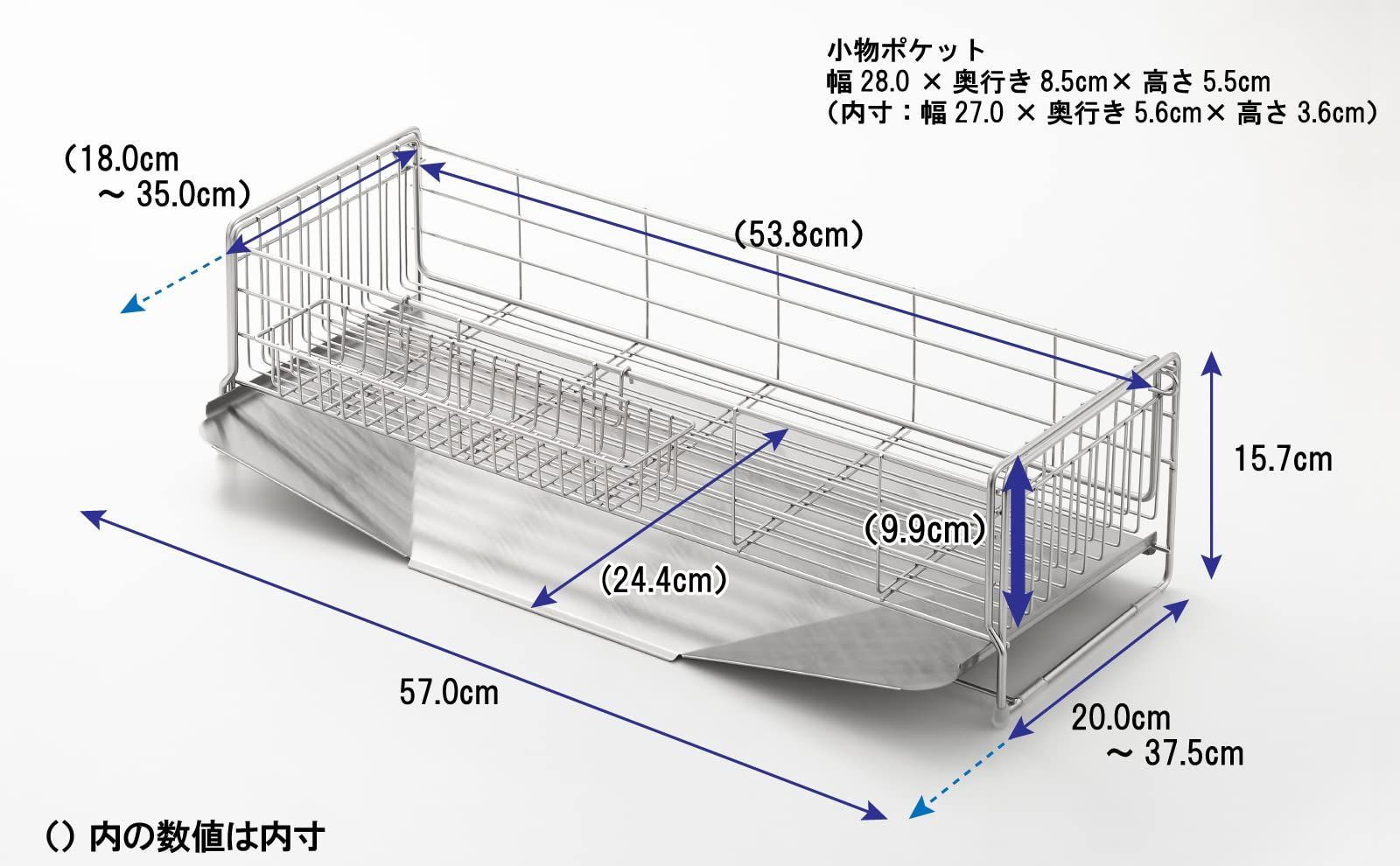 水切りバスケット内寸:18~35×53.8×9.9cm、重量:1.15kg