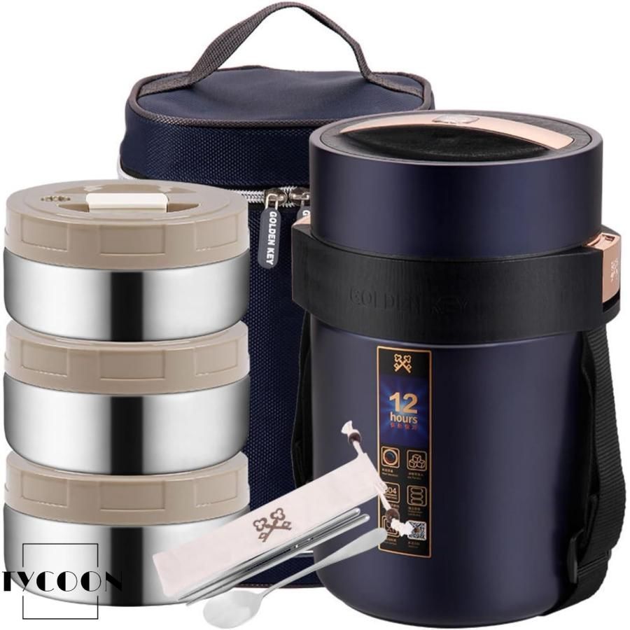 保温弁当箱 大容量 12時間の保温 ステンレス 保温ランチジャー フードジャー ポータブルお弁当箱 食器と収納バッグ付き ランチボックス フードコンテナ