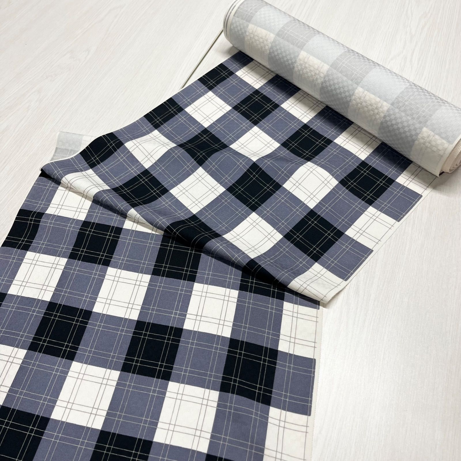 【新品未使用】 匿名配送 反物 丹後ちりめん 未仕立て 絹100% 白 黒 モノトーン 市松