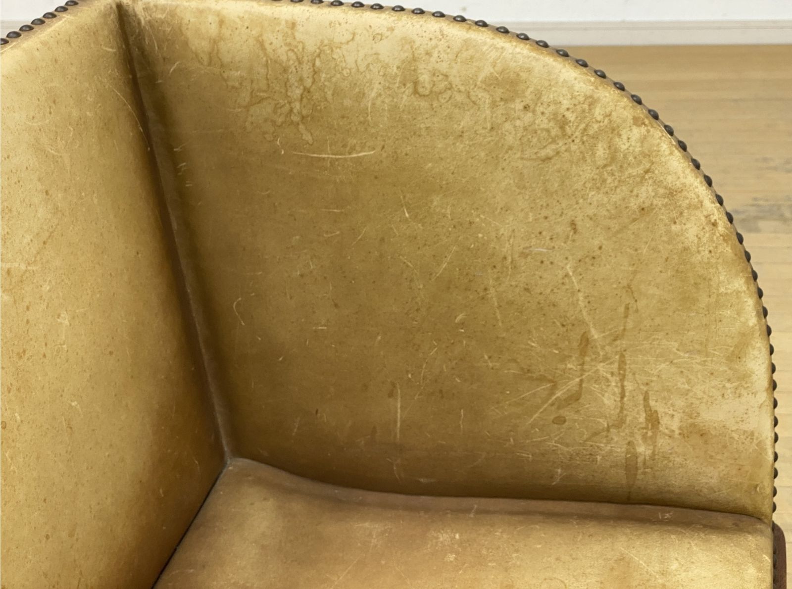 レザー部の色落ちや小キズこそあるものの、ワレやヒビなどは無く、使用自体には問題はありません。