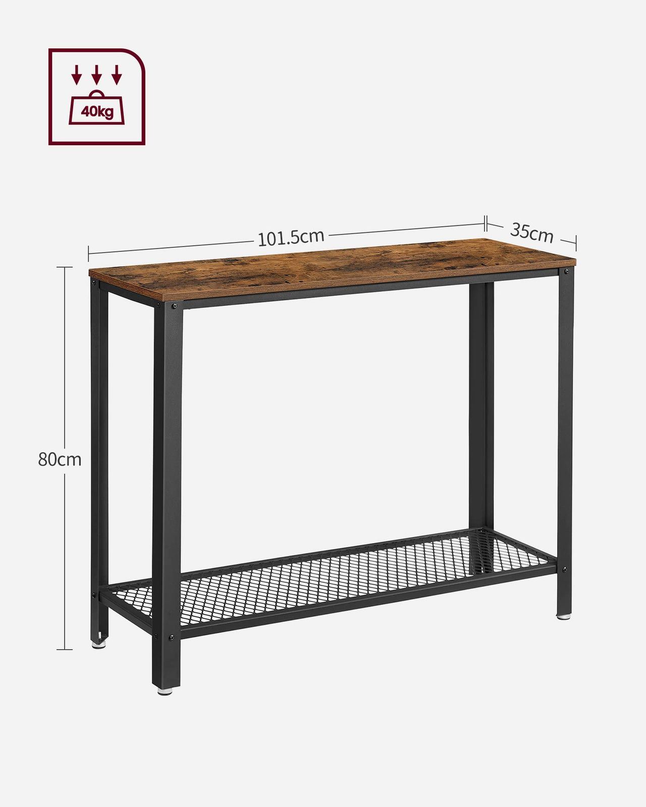 コンソールテーブル ハイテーブル パソコンテーブル カウンターテーブル 木目調 スリム 幅101.5×奥行き35×高さ80 cm おしゃれ VASAGLE 玄関テーブル 細長いテーブル LNT 80 X