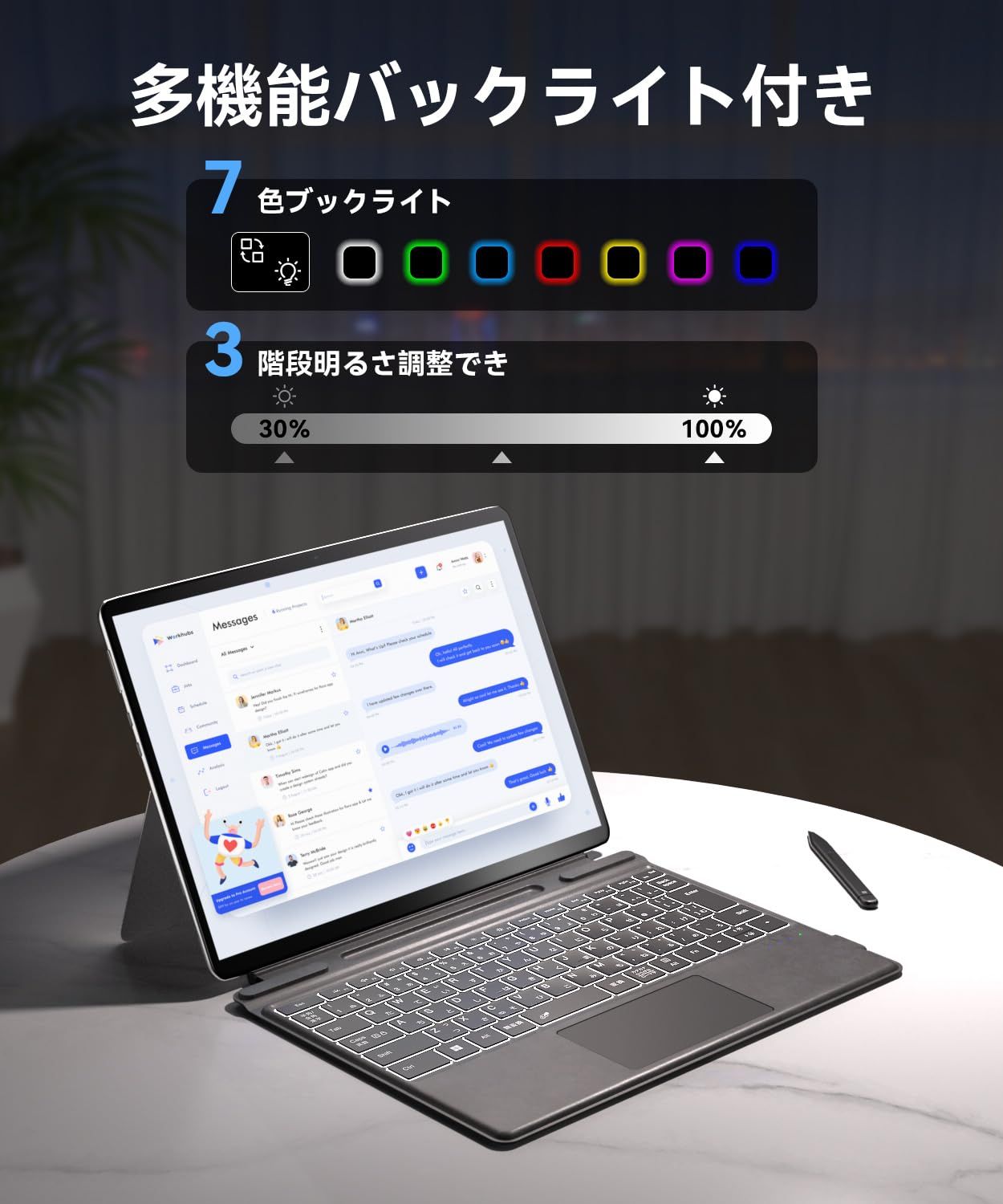 ?【タッチパッド& 7色バックライト】サーフェスプロ11 キーボード は高精度のタッチパネルを搭載し、マウスポインタとジェスチャーの操作を組み合せ、タブレットでも効率的に操作できます。ご注意:タッチパッドの使用はWin10とWin10以後のバージョンが必要です。