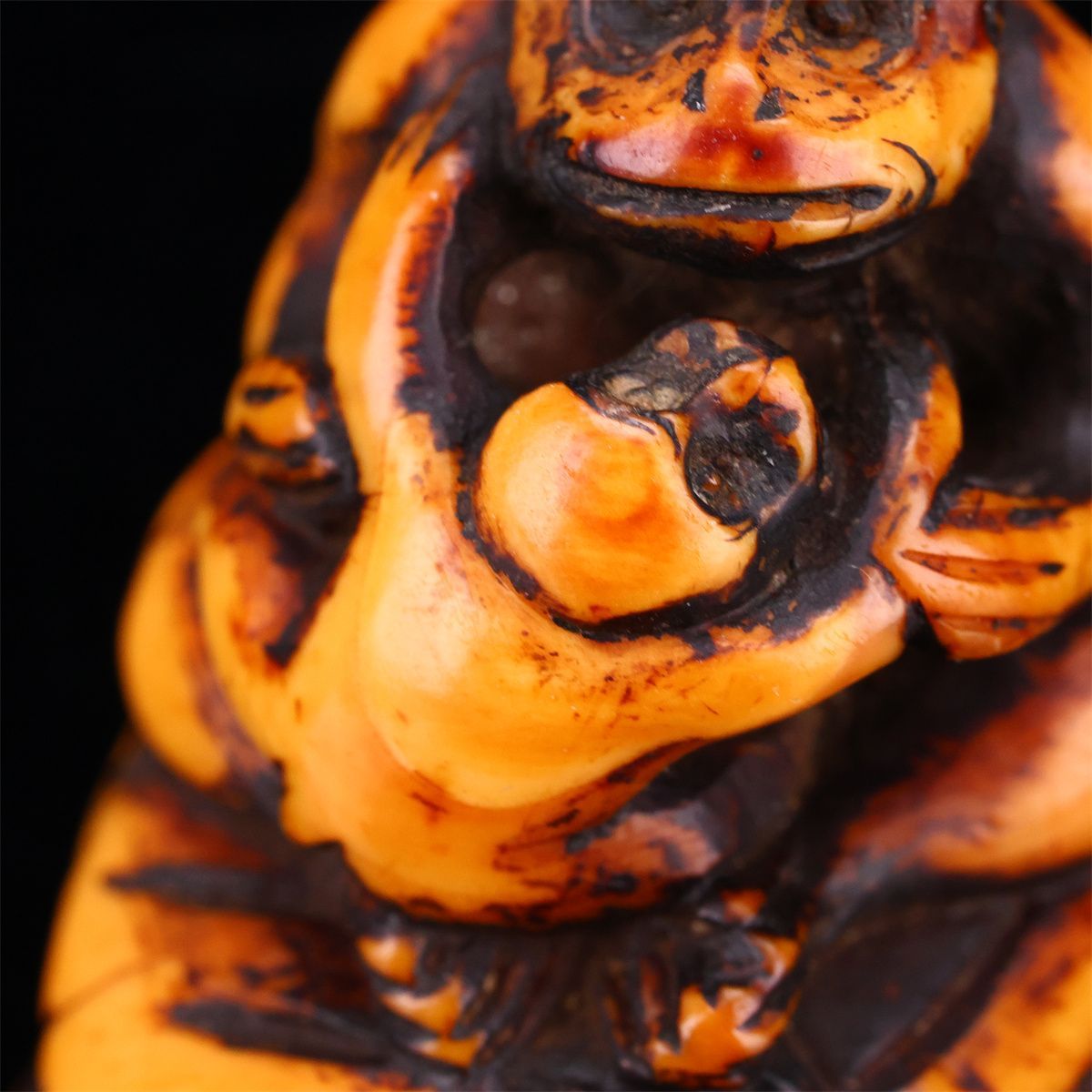 江戸時代 とても古い 東洋彫刻 葉に乗せる猿 根付!1176