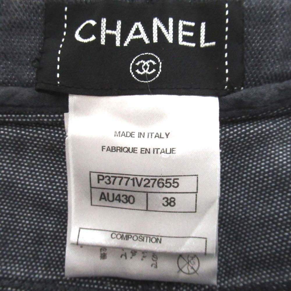 CHANEL シャネル バックポケットロゴ刺繍 ストレッチ ストレート デニムパンツ ジーンズ サイズ38 チャコールグレー レディース 古着