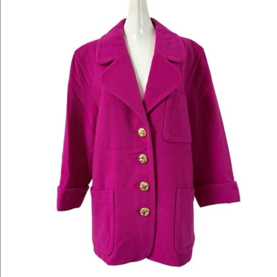 肉厚なコートで、ビビットなピンクとゴールドボタンが可愛いですよ^ ^