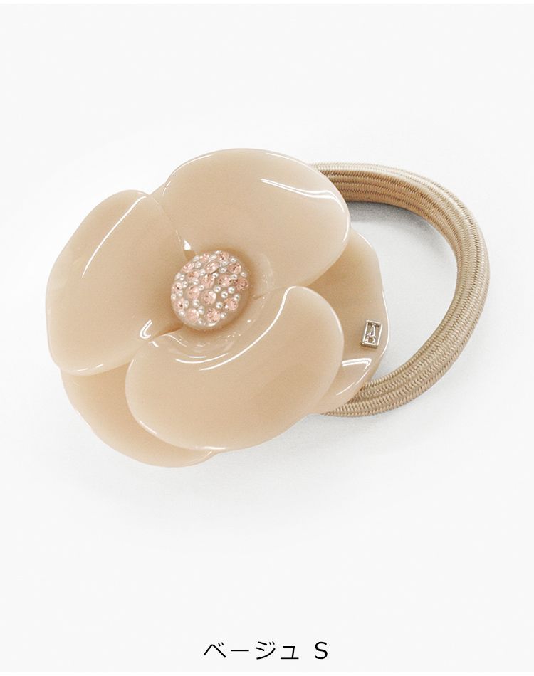 ドレスアップの時もちょっとお出かけの時にも華やかで女性らしく 上品な存在感のあるカメリアヘアゴム。