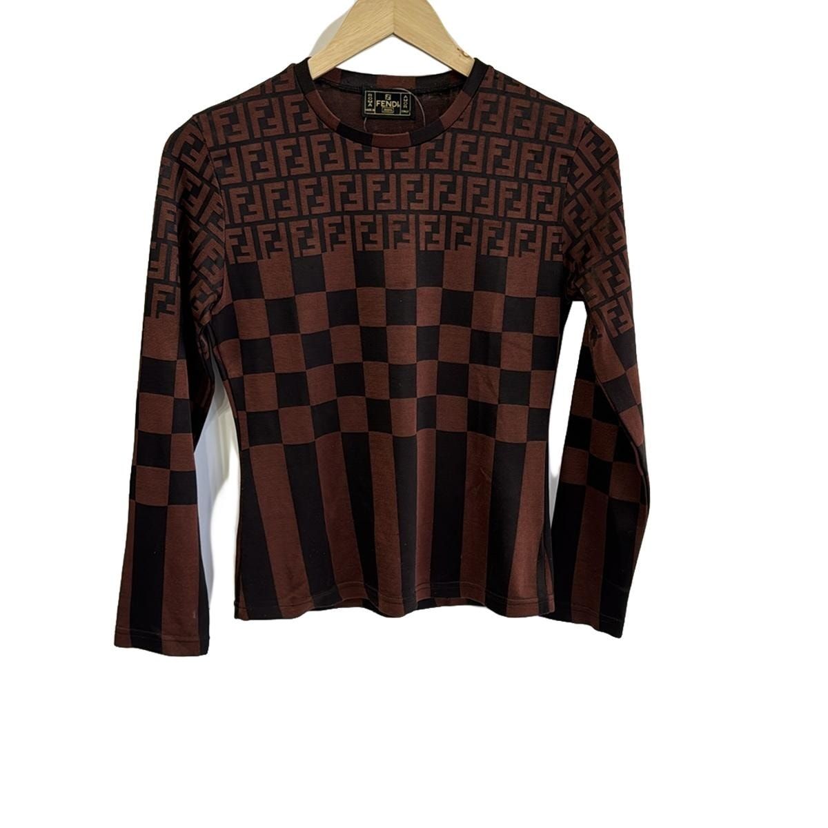 FENDI フェンディ 長袖セーター レディース - 黒×ブラウン クルーネック ズッカ柄