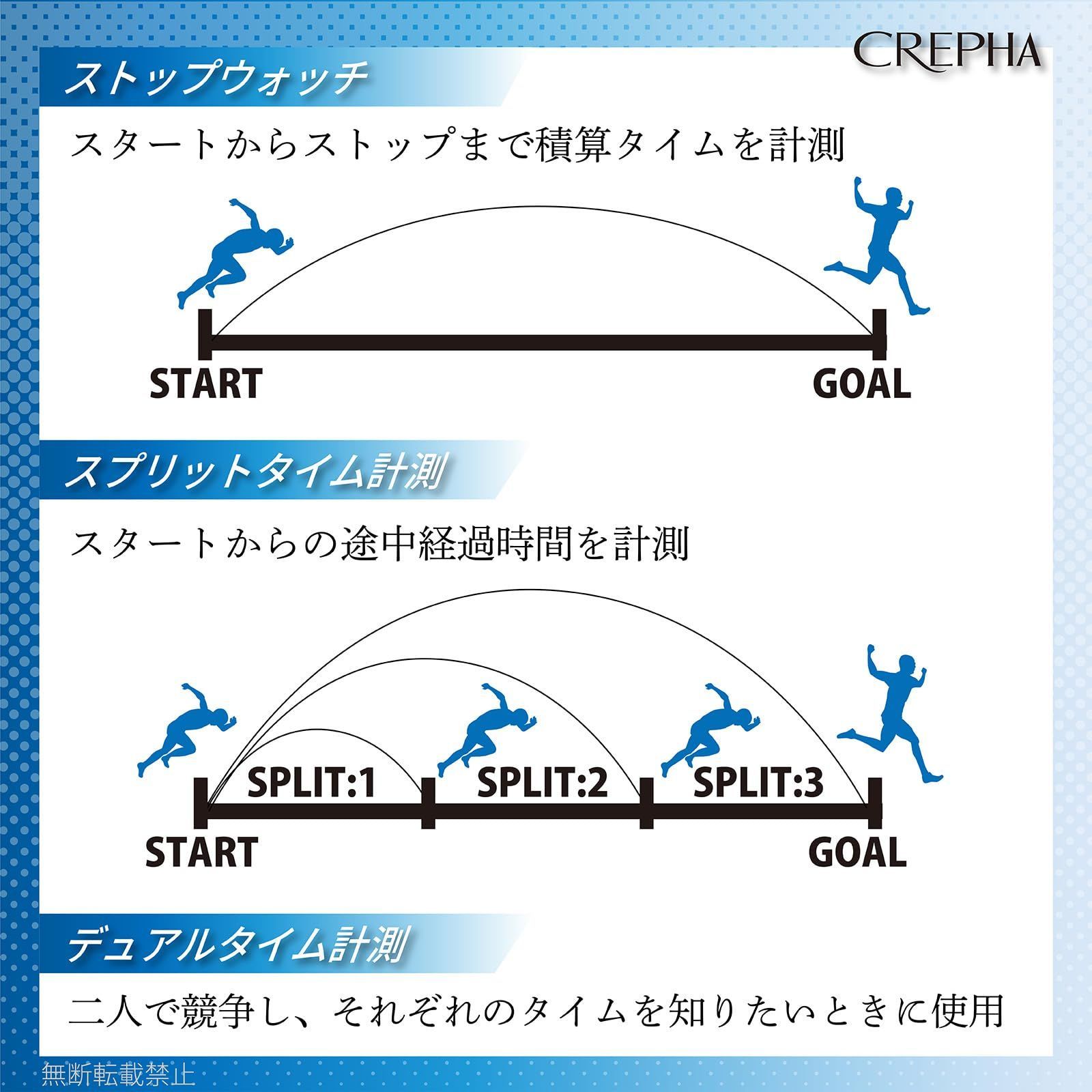 CREPHA(クレファー) ストップウォッチ デジタル スポーツ アラーム ラップ タイマー ブラック TE-S320-BK