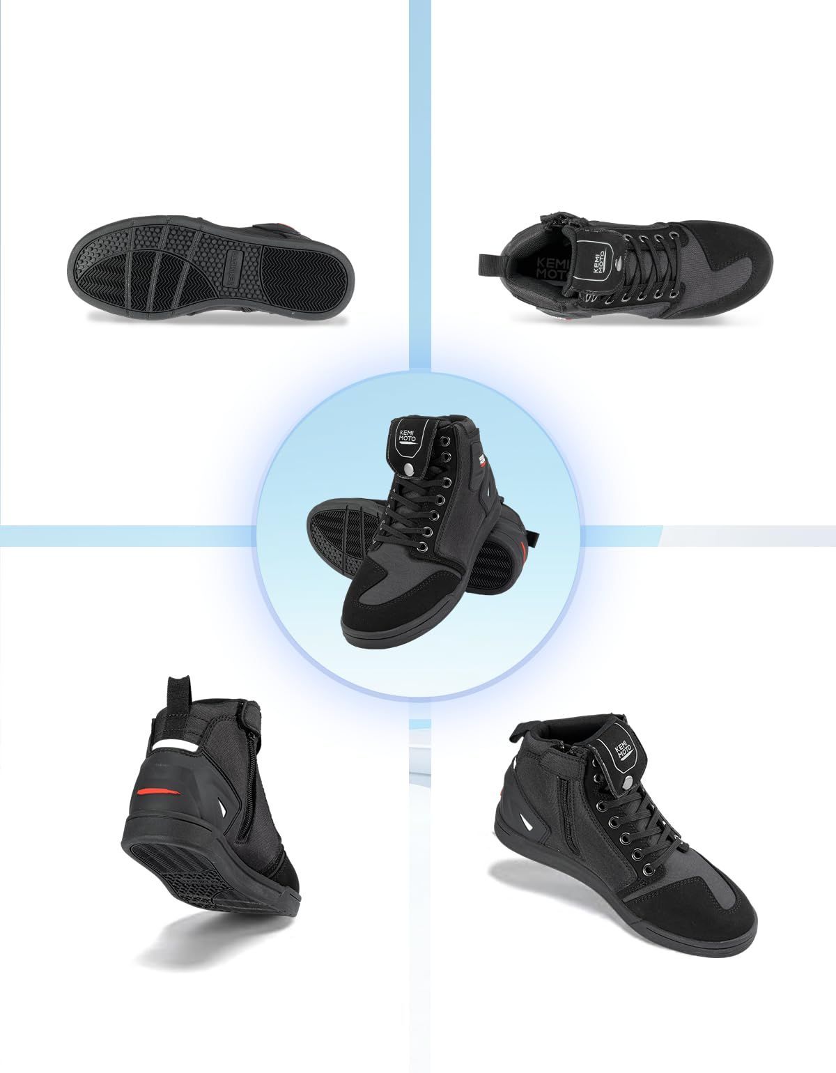 [KEMIMOTO] バイク シューズ メンズ ライディングシューズ バイクブーツ バイク用靴 厚底 通気性 耐摩耗性 疲労対策 プロテクト 滑り止め メンズ KM1125-01