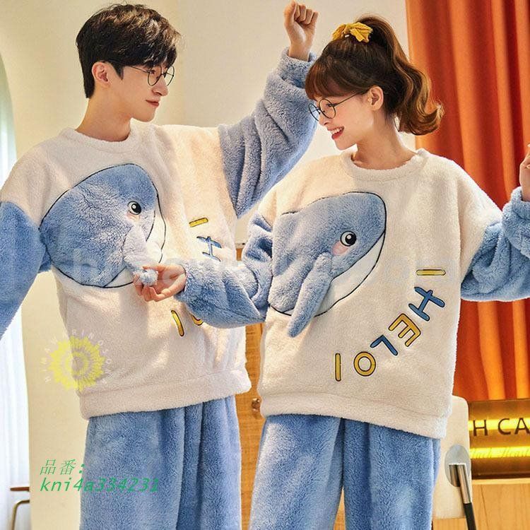 ルームウェア 部屋着 寝巻き パジャマ レディース メンズ 高校生 秋 裏起毛 防寒 韓国風 上 冬 お揃い ふわふわ 暖かい もこもこ kni 4 a 334231