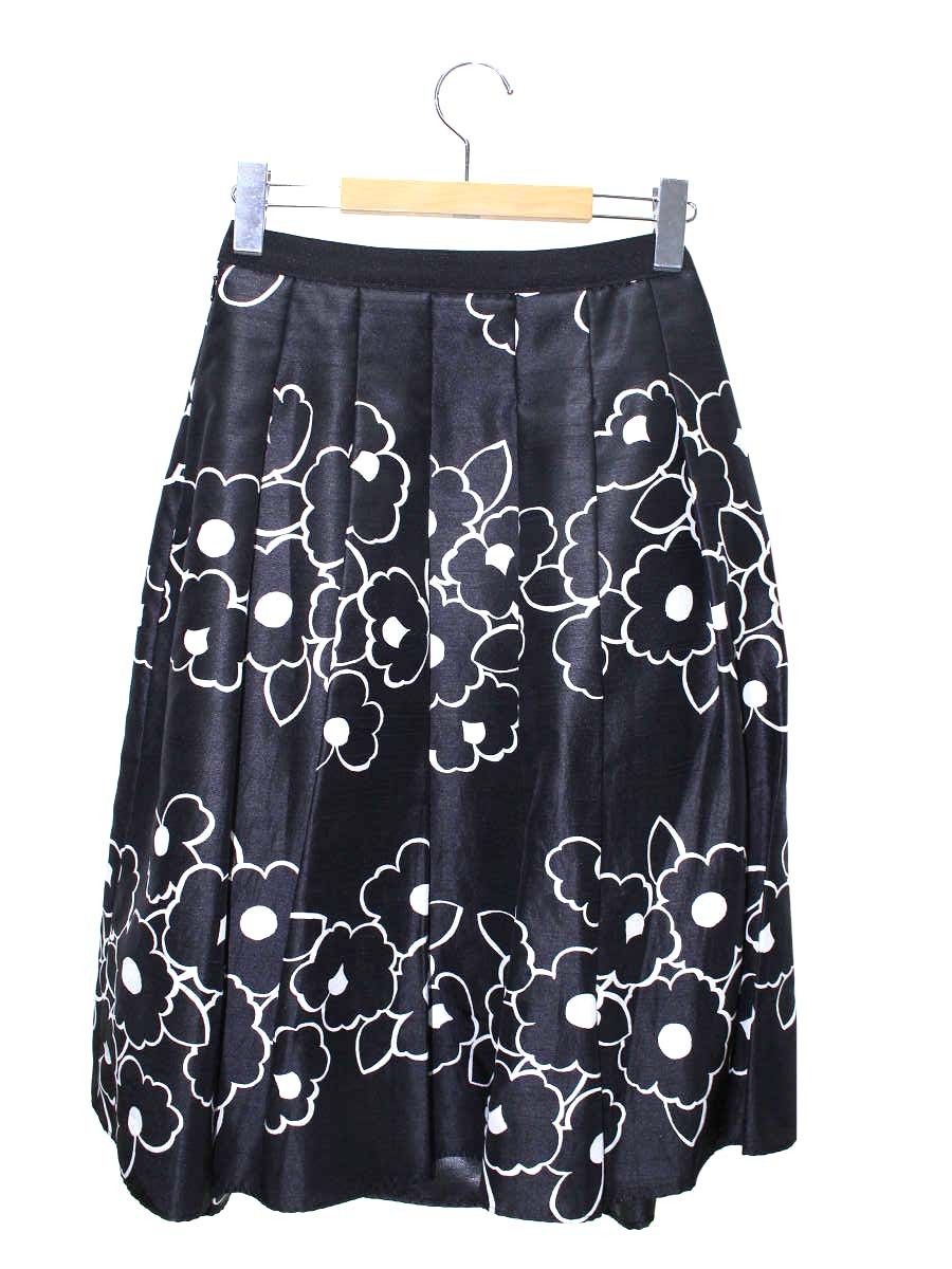 エムズグレイシー 317337 スカート 38 ブラック フラワーモチーフ タック フ